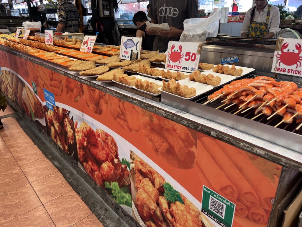 エビやカニのフライなど、すぐに食べれるものもたくさん売っていました。