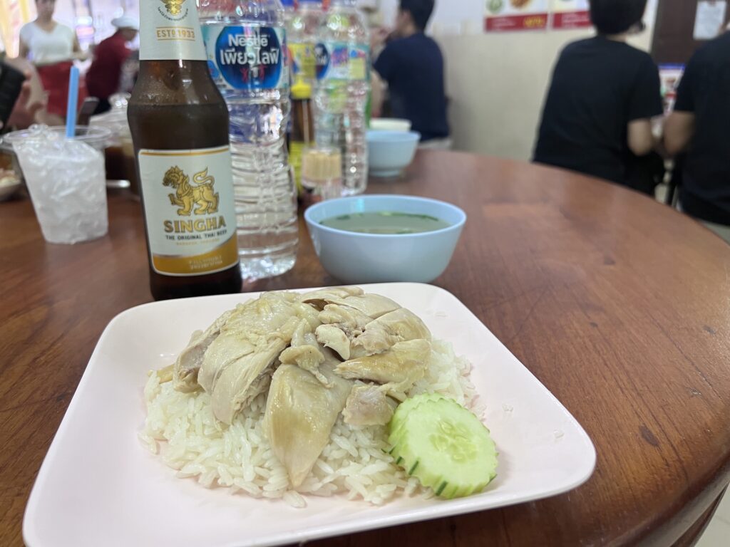 お昼は世界さまぁ~リゾートで紹介された有名なお店「バイレイ」へ。約240円で絶品のカオマンガイを頂くことができました。