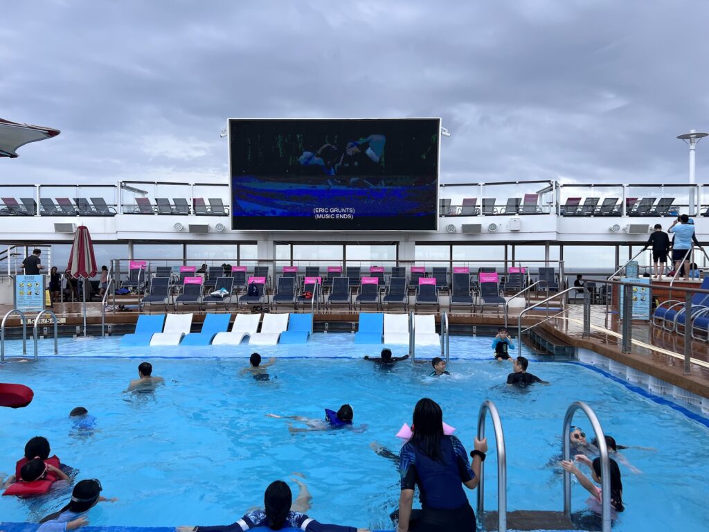 船の雰囲気も相まって子供は映画に没頭して、プールで浮かびながら映画を見るという贅沢な時間を過ごすことができました。