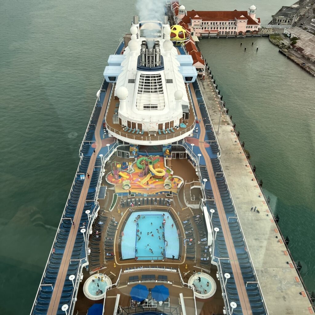 今回はペナン港に停泊中に利用しましたが、航海中やサンセットの時間であれは素晴らしい絶景に出会えるはずです!