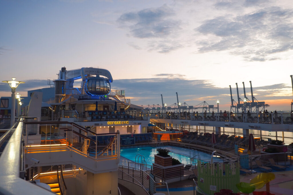 マラッカ海峡は温暖な気候なのでプールサイドやジャグジーで一日ゴロゴロしたり、船内のアクティビティーを楽しんだり、キャビンで好きなだけお昼寝したり、何をしても自由!