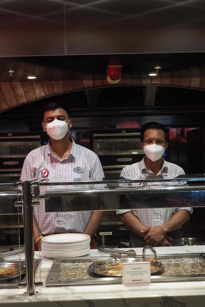 担当テーブルの配膳係の方がちょっとした雑談をしてくれるのも、海外クルーズ船ならでは!