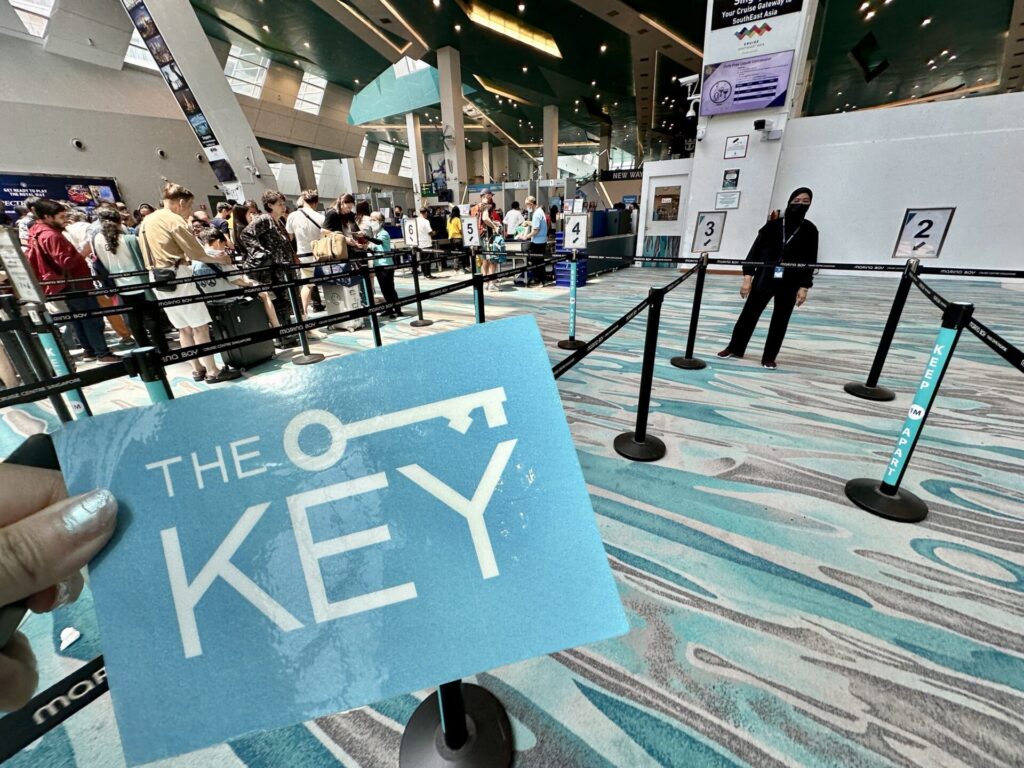 係の人に予約時間まで待つよう言われましたが、THE KEY購入済と伝えるとすぐに乗船の手続きに進む事ができ、長い行列もスキップ。