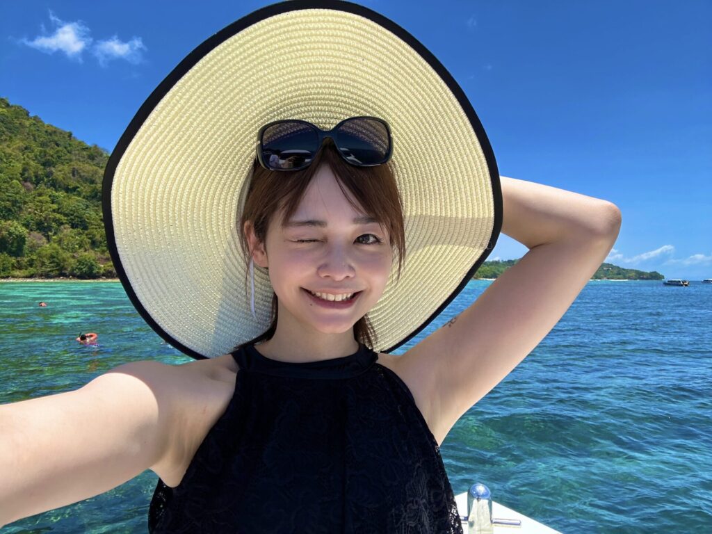最初こそ小型船の揺れに酔ってしまったものの、エメラルドグリーンの透き通った海と、ペナン島でお揃いにした麦わら帽子が映えすぎて、船酔いも吹き飛びました。