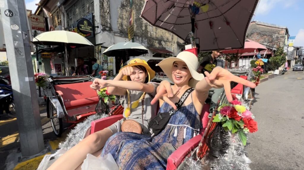 別名「アートの街」とも呼ばれるジョージタウンでストリートアートとカフェ巡りをした後は、「トライショー」と呼ばれる人力車に乗って、観光スポットで写真を撮りながら街をひと回り。