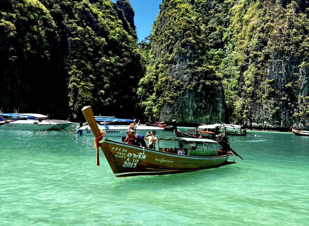 プーケットは大型船が入れる大きな港がないため、沖から陸地まで中型船で向かいます。