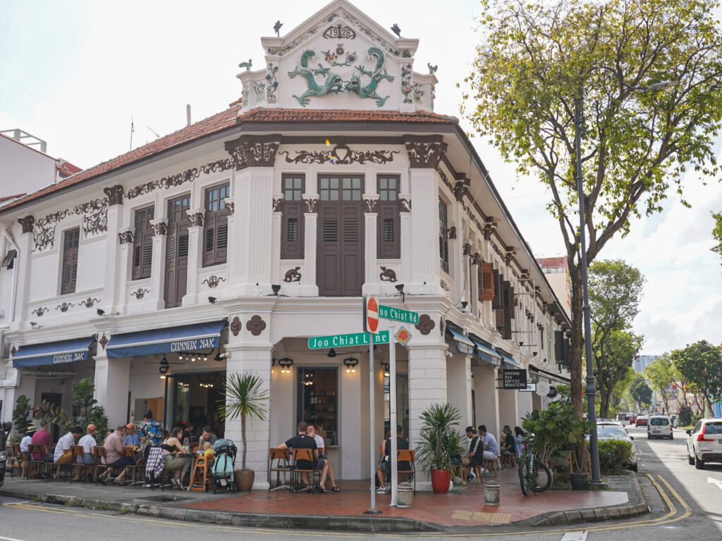 ホテルでの朝食はつけず、インスタ映えで有名なこのカラフルな「Peranakan House プラナカンハウス」から徒歩数分の「Common Man Coffee Roaster」でいただきました。