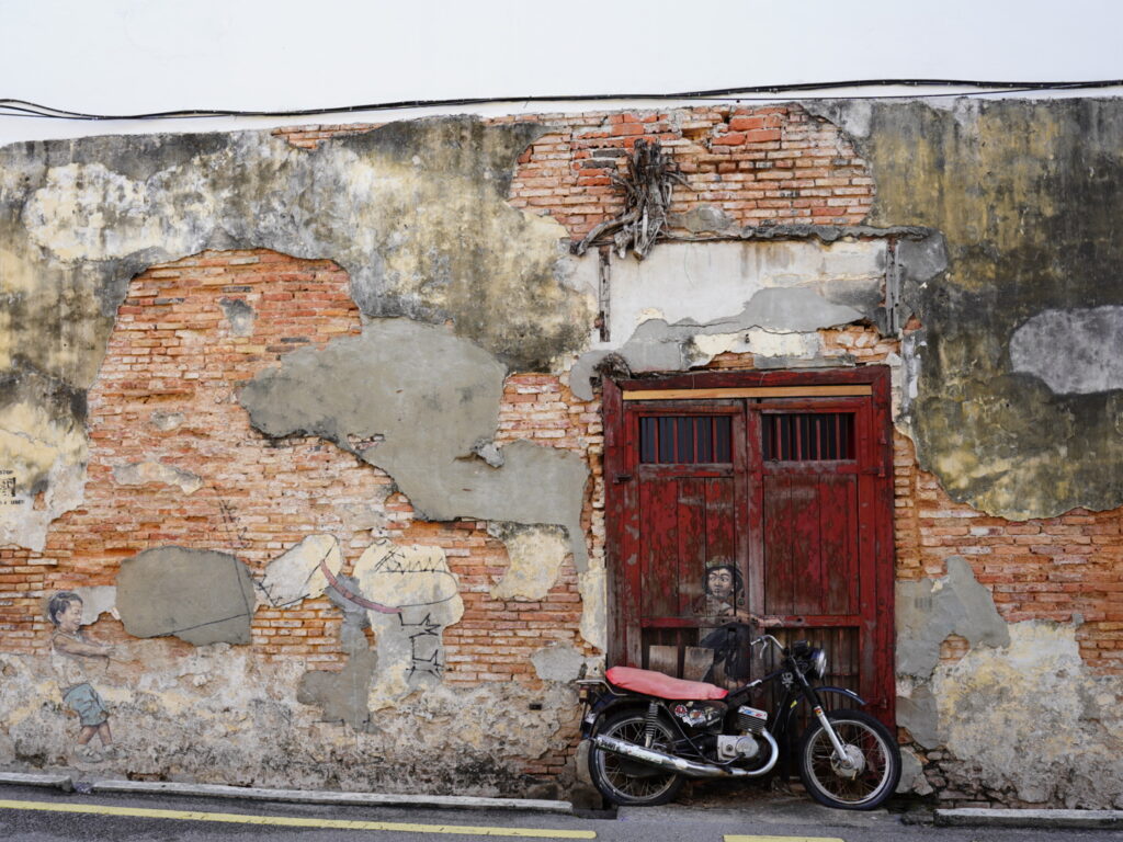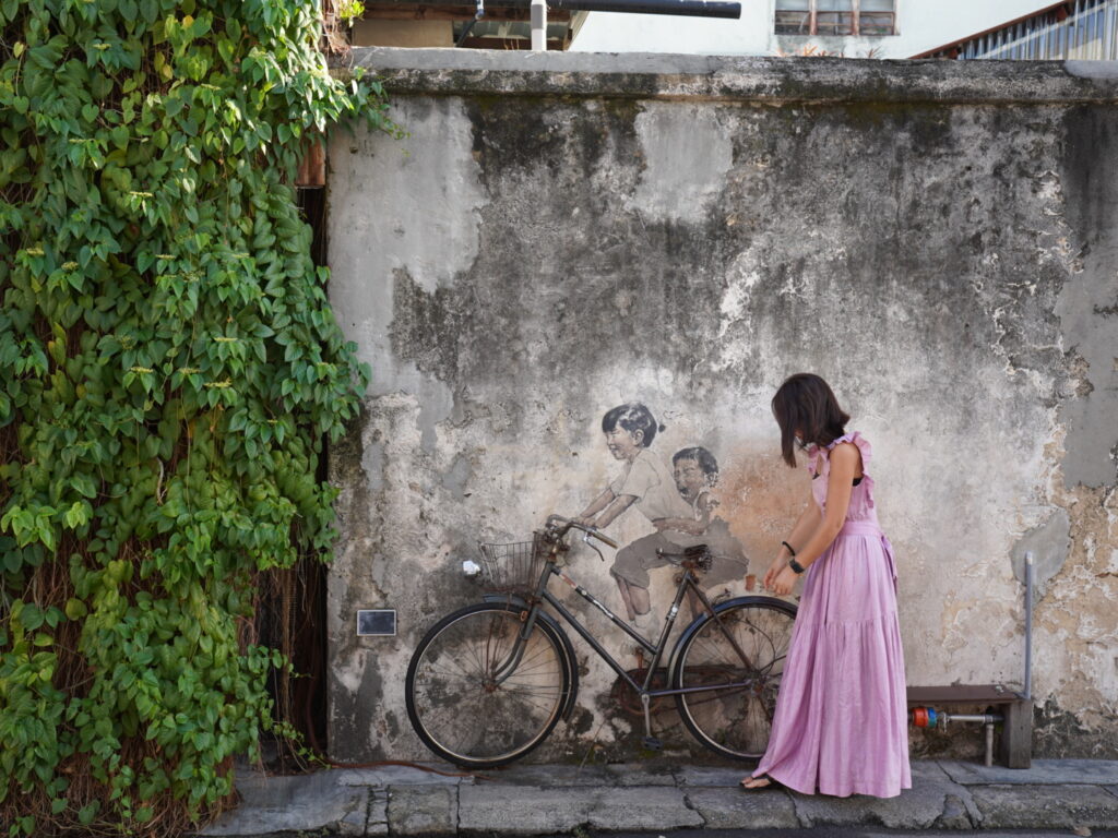 実はペナン島は4回目ですが、十年前に来たときは色鮮やかだったウォールアートも現在は少し色褪せていました・・。
