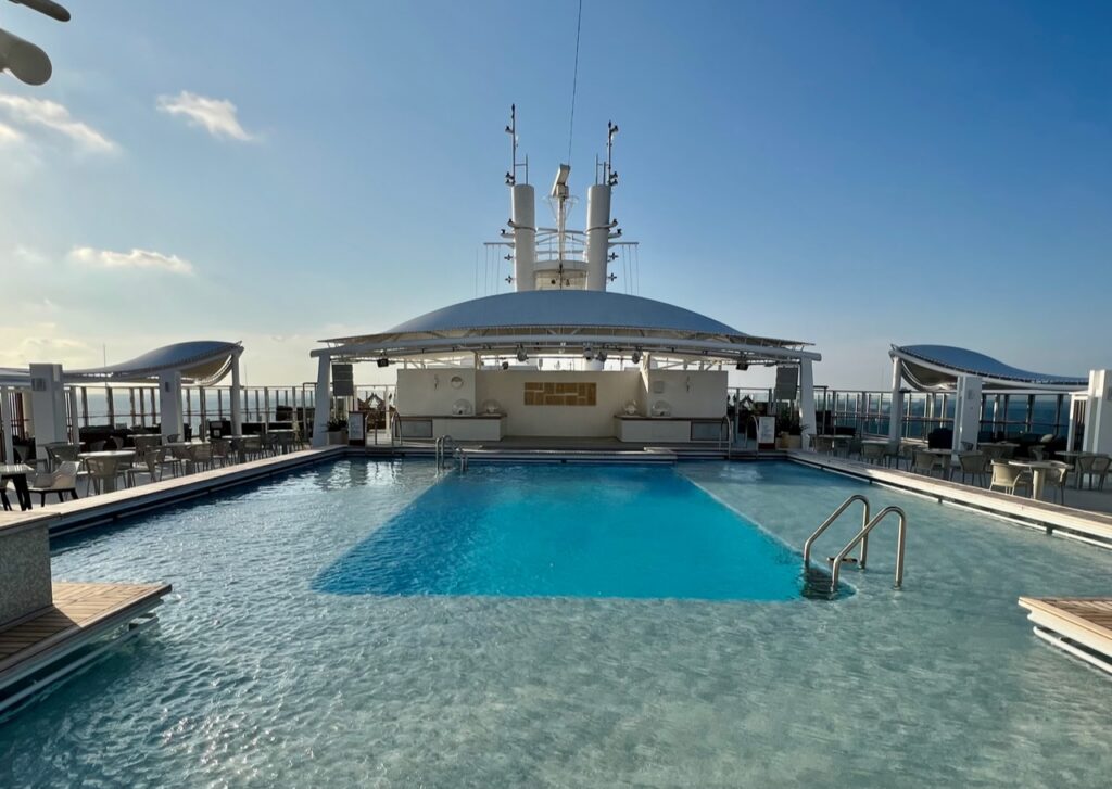 寄港地観光などでなかなかゆっくりプールに入れなかったので優雅なひととき。