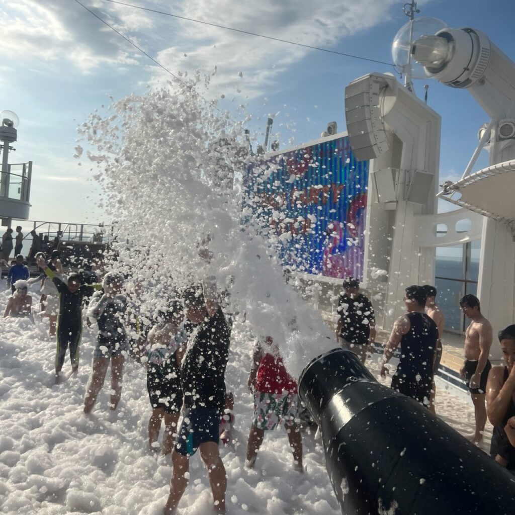 船に戻りこの日はフォームパティー。追加で20$支払うとワンドリンク付きで泡パーティが楽しめます。