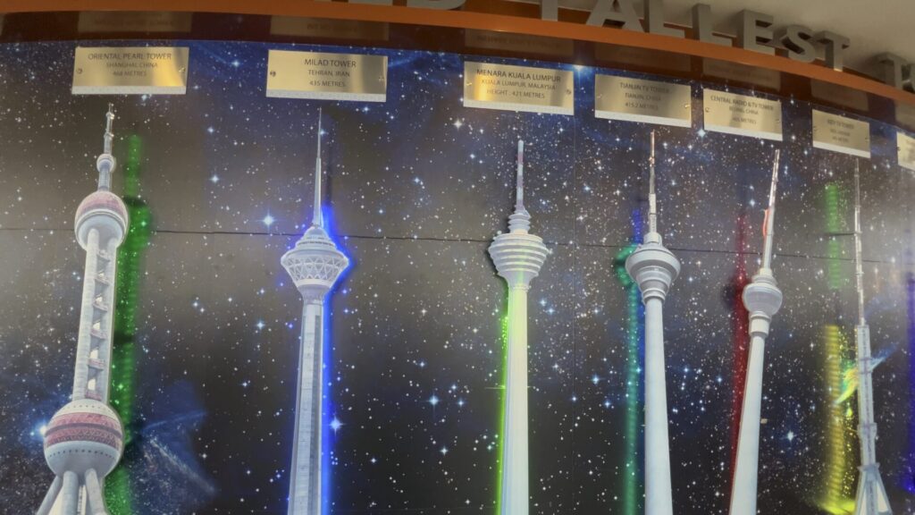世界のタワー比較もあり東京タワーやスカイツリーとの高さの違いなど見ながら見学。