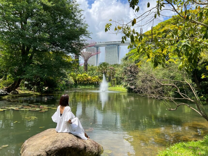 このエリアは無料で入場できるエリアですが、背景にマリーナベイサンズとガーデンオブザベイの写真を撮ることができるベストスポットです!