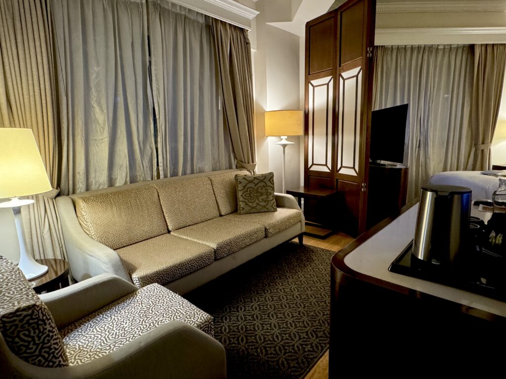 朝食のオーダーできるチキンヌードルは絶品。熱々の肉まんやしゅうまい、フレッシュなサラダやフルーツ、珈琲も美味しかったです。手頃な価格でこの上質な体験ができるのは、さすがシンガポール生まれのホテルチェーン「ファーイースト・ホスピタリティ」です。クルーズの前後泊におすすめですね。