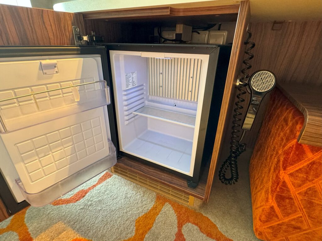 その他、客室には、テレビ(映画見れます!)、湯沸かし器、冷蔵庫の隣にドライヤー、金庫などが設置されています。