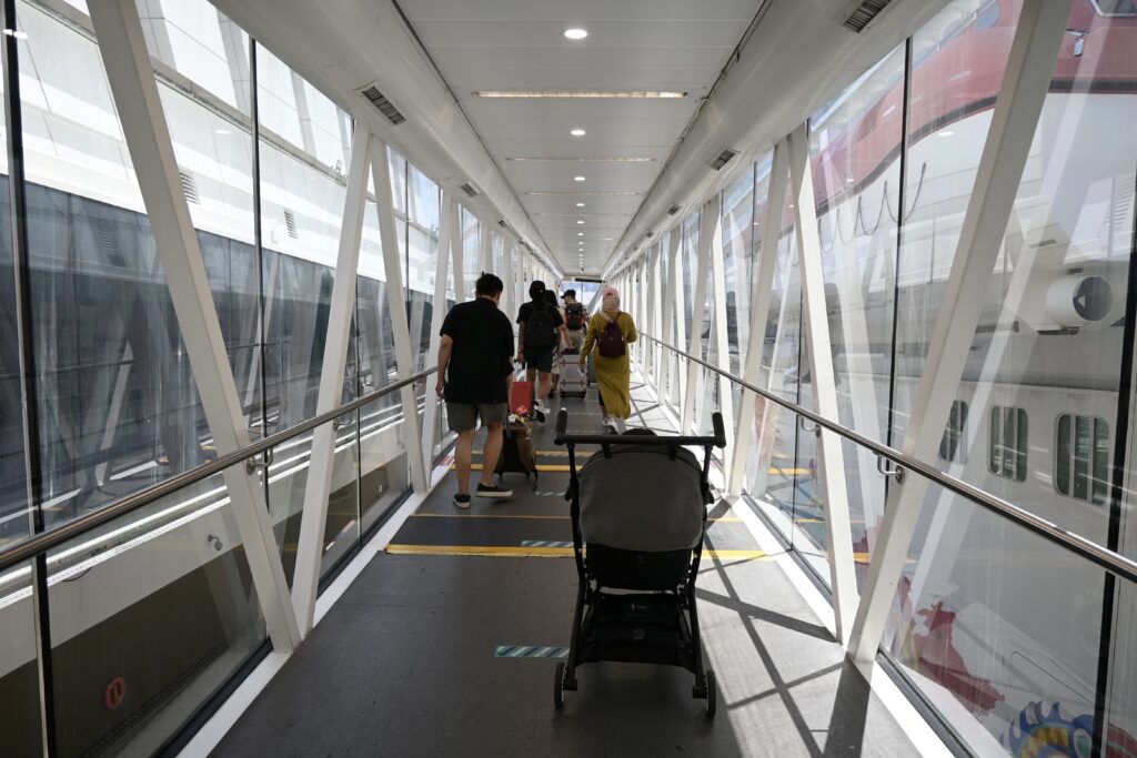 その後、案内表示に従い、出国審査へ進みます。ターミナル到着してから1時間少々で、あっという間にいざ船内へ。