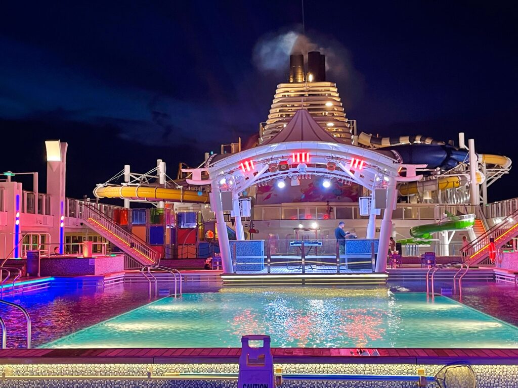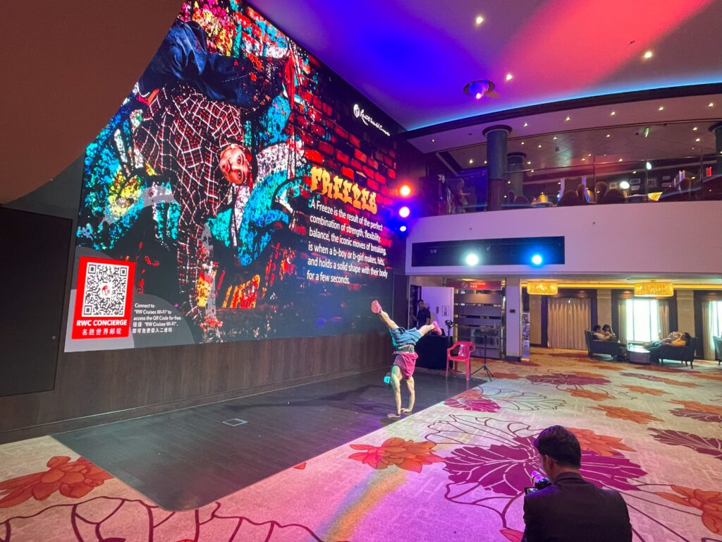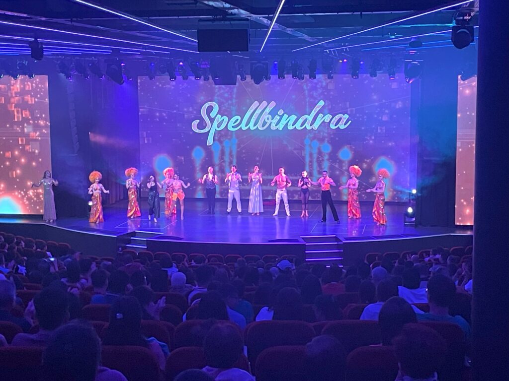 ゾディアックシアター(デッキ7前方)では約1,000人を収容できるとのこと、本当に広々としています。私たちは開演の30分前には行って前方の席を確保することができました。