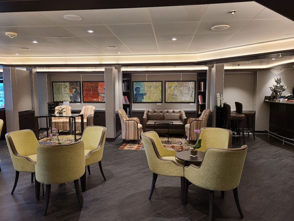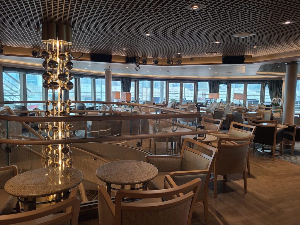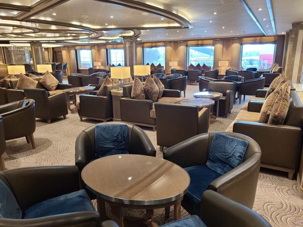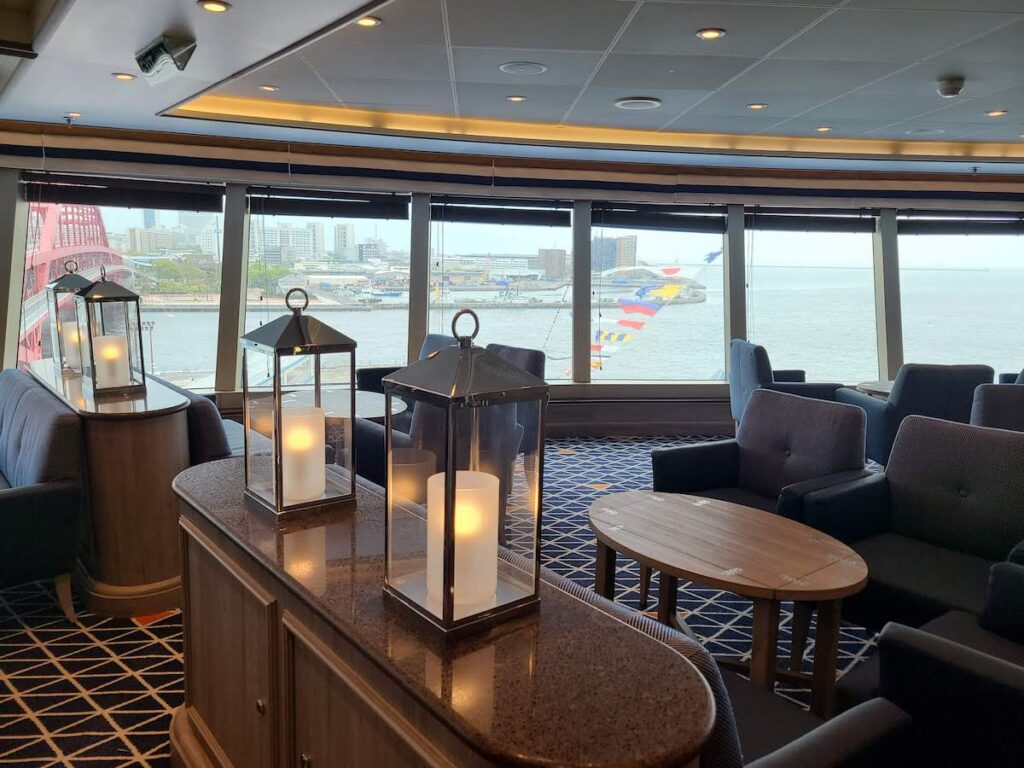 広々とした空間にゆったりしたソファが設置されており、乗船してすぐ優雅な気分になりますね!