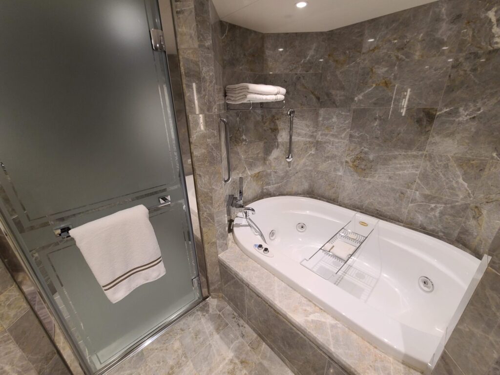 乗客は欧米人が多いそうなのですが、日本人からしてもバスタブ付きのお部屋は嬉しいですよね。