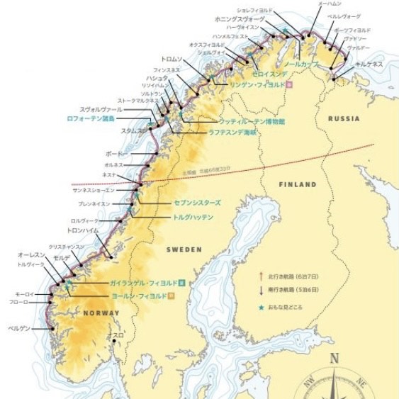 今回は北へ向けて、オーレスン、トロンハイム、ボードー、トロムソなどの都市に寄港しながら北極圏に突入していく7日間のノルウェークルーズだったけど。