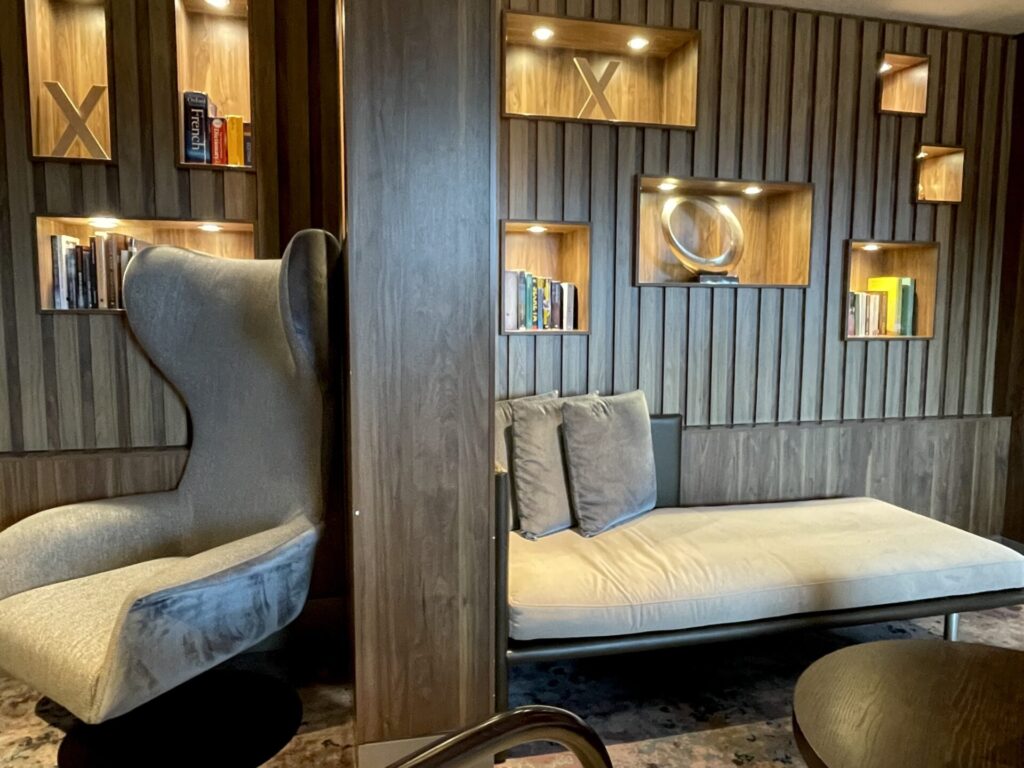 船内はデザイン性のあるインテリアや様々なアート作品が点在し洗練されてます。ライブラリーもユニーク!