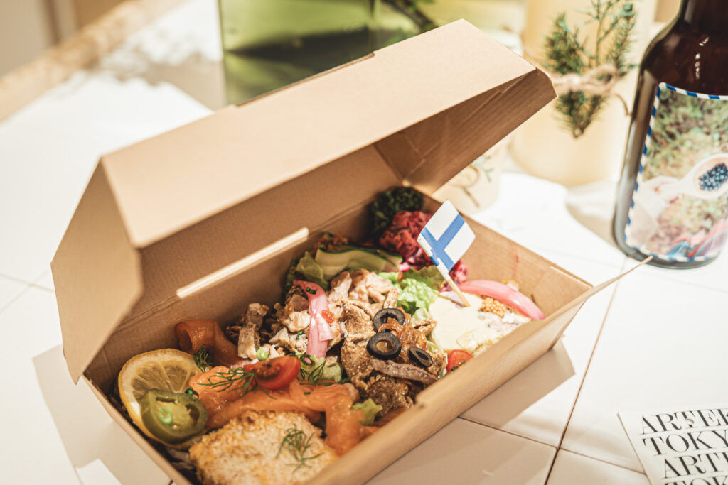 フィンエアーエコノミークラスの機内食ボックスをイメージした一日限りのフィンランド料理を提供