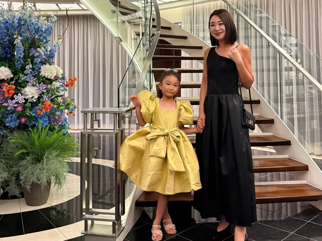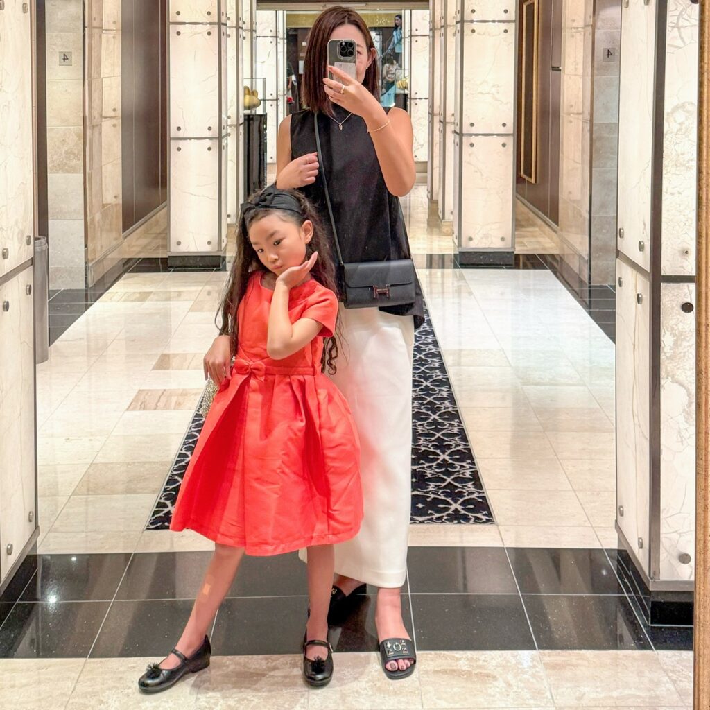 娘のドレスも少し光沢感やフリルなどをあしらったドレッシーなものを選びました。