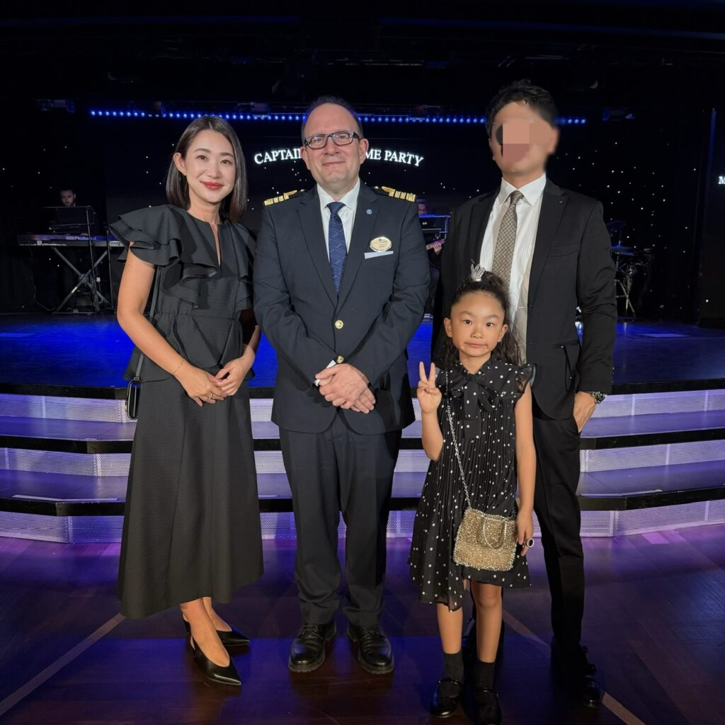 実際には今回は夏の暑い季節の乗船ということもあり、男性はタキシード、女性はイブニングドレスまでお召しになる方はいらっしゃいませんでした。