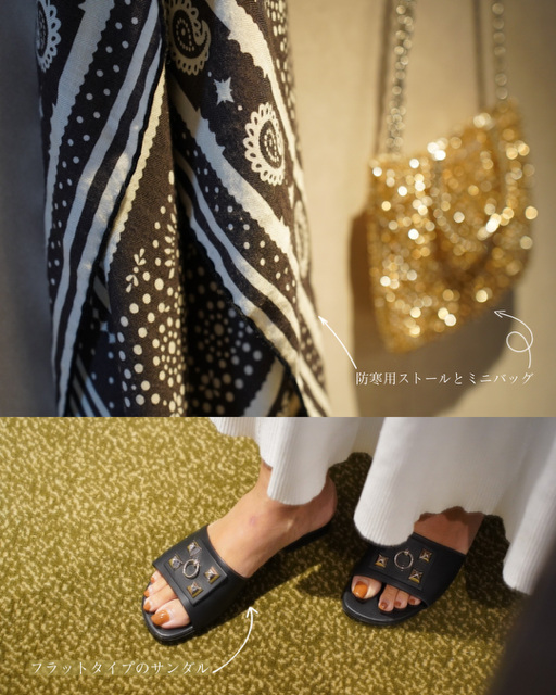 船内ではやはりリラックスしたいのでフラットシューズが便利です。