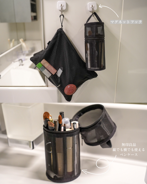 キャビン内の壁はマグネットが利用できるので、フックなどを活用し引っ掛ける収納を活用するととても便利です。