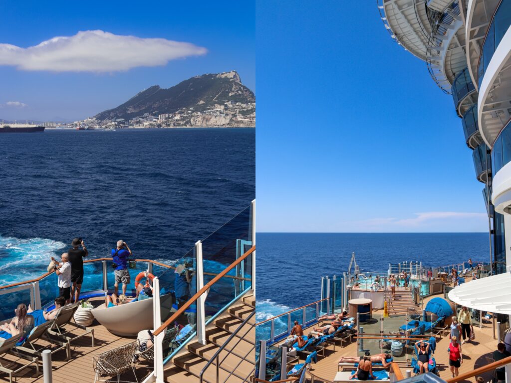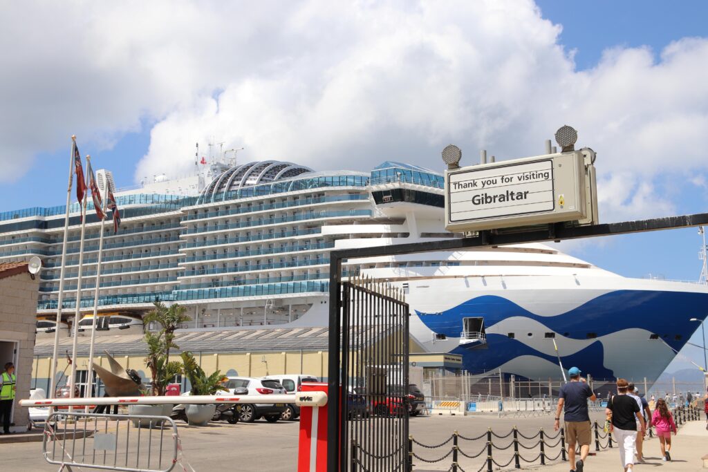 ▼総トン数175,500トン、乗客定員4,300名のサン・プリンセス(寄港地ジブラルタにて)