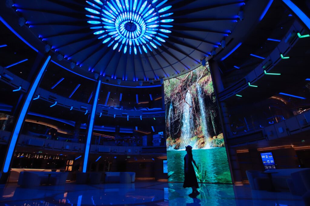 今までの海外クルーズ旅行では体感したことのない、なんとも魅惑的な空間! 写真映えスポットとしても覚えておきましょう。