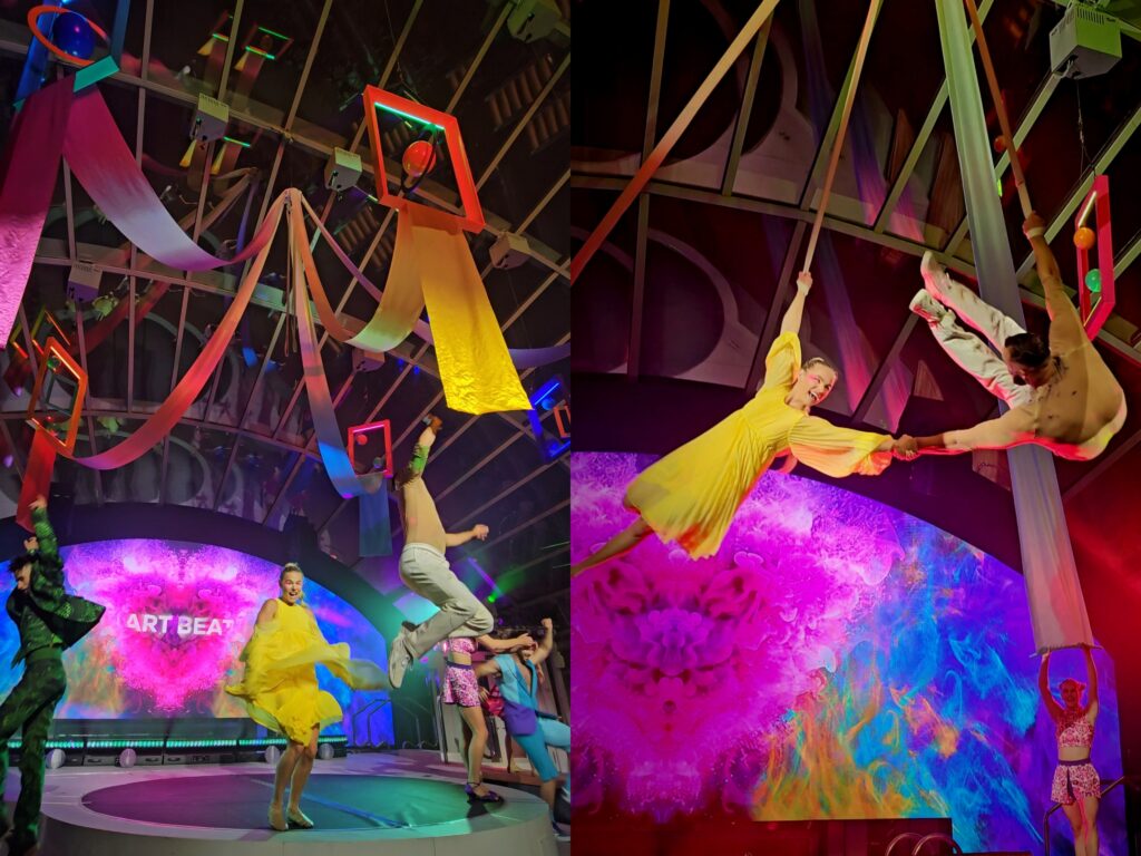 日中はヨガやストレッチ、屋内プールといったウェルネスな活動の場として使われ、夜は「シルク・エロワーズ」による華やかなパフォーマンスショーが繰り広げられます。