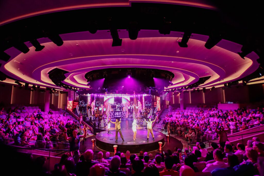 日中のユニークなイベントや映画鑑賞をはじめ、寄港地からの出港タイミングでセイルアウェイ・ショーが行われます。