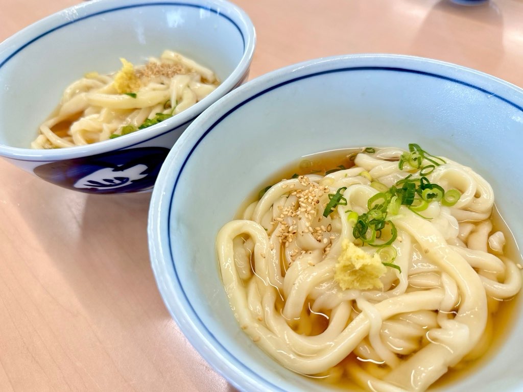 温と冷で1杯ずつ、薬味だけのシンプルなおうどんは、麺そのもののお味が存分に感じられ、忘れられない美味しさでした。