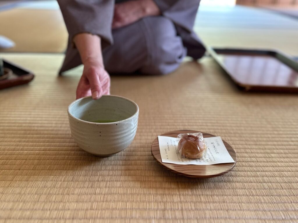 美しい庭園を静かにぼぅっと眺めながらお抹茶を頂くと、身体中が澄み渡るような感覚になりました。優雅なひとときに心洗われます。