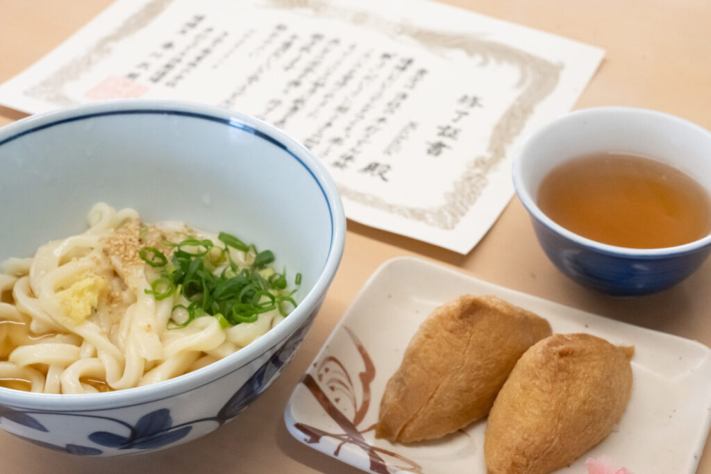 記念に名前入りの修了書やうどんを伸ばすときに使った棒もお土産に持ち帰れます。